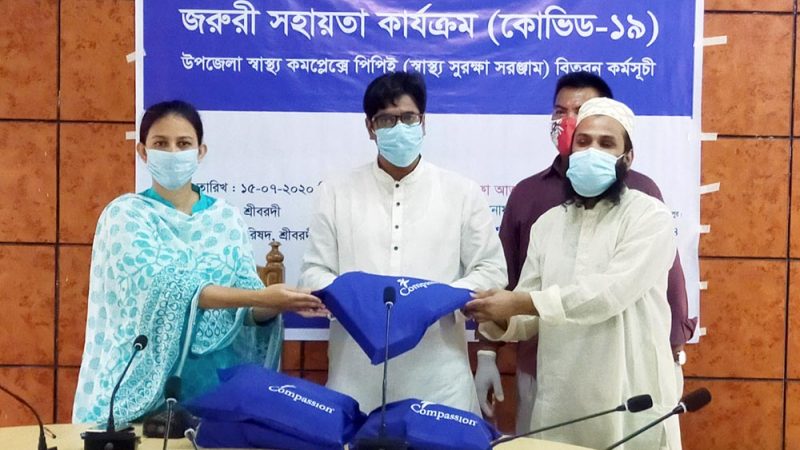 শ্রীবরদী (শেরপুর) প্রতিনিধি ॥ করোনা ভাইরাসের বিস্তার রোধে শেরপুরের শ্রীবরদী উপজেলা স্বাস্থ্য ও পরিবার পরিকল্পনা বিভাগকে পিপিই ও স্বাস্থ্য সুরক্ষার সরঞ্জাম দিয়েছে বেসরকারি সংস্থা মধ্য ও দক্ষিণ বাংলাদেশ শিশু উন্নয়ন প্রকল্প বাবেলাকোনা বিডি-০৪২৪। ১৫ জুলাই বুধবার দুপুরে উপজেলা পরিষদের সোমেশ্বরী হলে আনুষ্ঠানিকভাবে সুরক্ষা সরঞ্জাম (পিপিই) হস্তান্তর করা হয়। এর মধ্যে ছিল ১৫ টি প্রতিরক্ষামূলক মেডিকেল গাউন, ১৫টি সার্জিক্যাল মাস্ক, হ্যান্ড স্যানিটাইজার, সাজিক্যাল গ্লাবস। পরে ইউএনও অফিসে একটি স্মারকলিপি প্রদান করেন।
