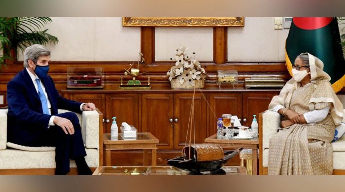 উল্লেখ্য, শুক্রবার চার ঘণ্টার সফরে ঢাকায় আসেন সাবেক মার্কিন পররাষ্ট্রমন্ত্রী ও যুক্তরাষ্ট্রের প্রেসিডেন্টের জলবায়ু পরিবর্তন ইস্যু-সংক্রান্ত বিশেষ দূত জন কেরি। সকালে হজরত শাহজালাল আন্তর্জাতিক বিমানবন্দরে তাকে স্বাগত জানান পররাষ্ট্রমন্ত্রী ড. এ কে আব্দুল মোমেন এবং তার স্ত্রী সেলিনা মোমেন। সংক্ষিপ্ত সফরে জন কেরি প্রধানমন্ত্রী শেখ হাসিনার সঙ্গে সাক্ষাৎ, পররাষ্ট্রমন্ত্রীর সঙ্গে বৈঠক এবং যৌথ সংবাদ সম্মেলনে বক্তব্য দেন।