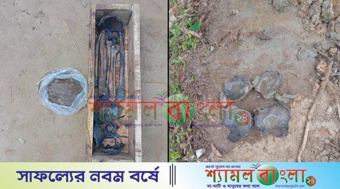 শেরপুরের ঝিনাইগাতী উপজেলার আহম্মদনগর বধ্যভূমির সংরক্ষণ কাজ করতে গিয়ে মাথার খুলি ও হাড়গোড় উদ্ধার হয়েছে। রবিবার দুপুরে বধ্যভূমিটি সংরক্ষণের কাজ করতে গিয়ে মাটি খোঁড়ার সময় ৪টি মাথার খুলি ও কঙ্কাল উদ্ধার করা হয়। ওইসব কঙ্কালগুলো সংশ্লিষ্ট দপ্তরের মাধ্যমে সংরক্ষণের জন্য নেওয়া হয়েছে।