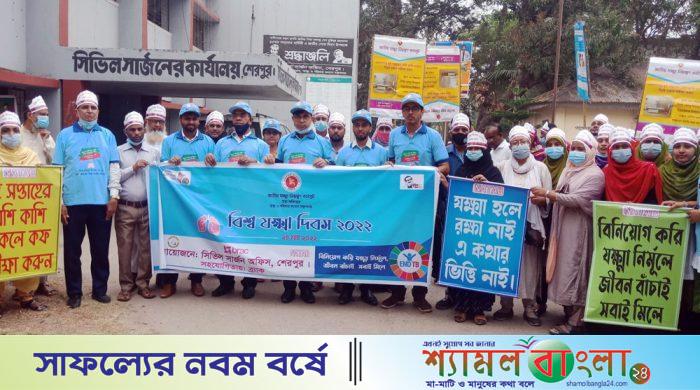 বিনিয়োগ করি যক্ষ্মা নির্মূলে, জীবন বাঁচাই সবাই মিলে’ এ প্রতিপাদ্য বিষয়কে ধারণ করে শেরপুরে বিশ্ব যক্ষ্মা দিবস-২০২২ পালিত হয়েছে। এ উপলক্ষে ২৪ মার্চ বৃহস্পতিবার জেলা সিভিল সার্জন অফিস ও সদর উপজেলা স্বাস্থ্য ও পরিবার পরিকল্পনা কর্মকর্তার কার্যালয়ের আয়োজনে এবং ব্র্যাকের সহযোগিতায় আলোচনা সভা ও র্যালি অনুষ্ঠিত হয়।
