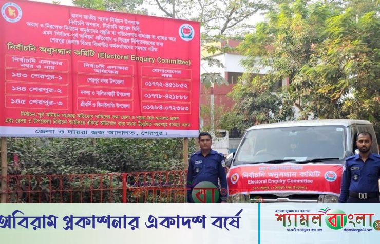 দ্বাদশ জাতীয় সংসদ নির্বাচন সুষ্ঠু, অবাধ ও নিরপেক্ষভাবে অনুষ্ঠানের লক্ষ্যে এবার নির্বাচন কমিশনের সিদ্ধান্তের আলোকে সারাদেশে সংসদীয় আসন ভিত্তিক বিচার বিভাগীয় কর্মকর্তাগণের সমন্বয়ে ৩শ নির্বাচনী অনুসন্ধান কমিটি কাজ করছে। প্রতিটি আসনে একজন করে বিচারক ওই নির্বাচনী অনুসন্ধান কমিটির চেয়ারম্যান হিসেবে নিয়োজিক রয়েছেন। তারা প্রাপ্ত তথ্য বা দাখিলকৃত অভিযোগের ভিত্তিতে বা স্বীয় উদ্যোগে নির্বাচন-পূর্ব অনিয়ম সংক্রান্ত বিষয়সমূহ বা ঘটনাসমূহ অনুসন্ধানের কাজ করছেন। তবে ৩ ডিসেম্বর রবিবার সন্ধ্যা পর্যন্ত শেরপুরের ৩টি নির্বাচনী এলাকায় ওই কমিটির হাতে কোন আচরনবিধি লঙ্গনের ঘটনা সনাক্ত হয়নি।