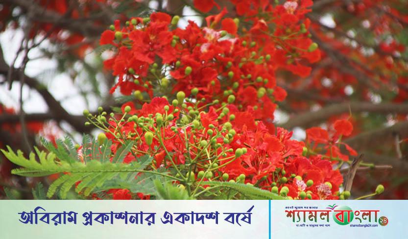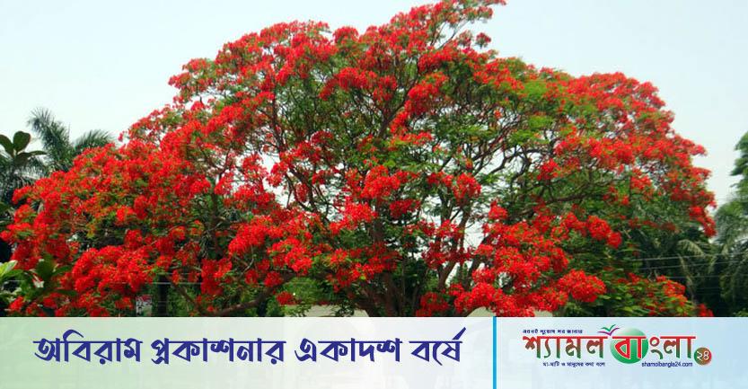 যার আভা পথচারী থেকে শুরু করে নাগরিক সমাজ, কবি, সাহিত্যিক, শিল্পী মনে দোলা দিচ্ছে। গ্রামের মেঠোপথ, সবুজ প্রান্তর থেকে শুরু করে বিভিন্ন রাস্তাঘাটে রঙিন আভা ছড়িয়ে প্রকৃতিকে নয়নাভিরাম সাজে সাজিয়েছে কৃষ্ণচূড়া। যা পথচারী ও প্রকৃতিপ্রেমীদের হৃদয়-মন কেড়ে নিচ্ছে। প্রতিদিনই সকাল-বিকেলে স্কুল-কলেজের শিক্ষার্থী, যুবক-যুবতি কৃষ্ণচূড়ার সৌন্দর্য উপভোগে মেতে উঠছেন।