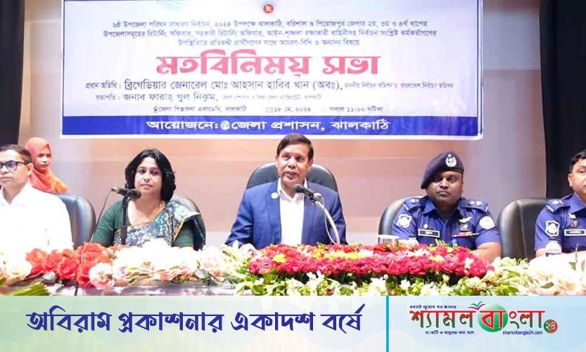 উপজেলা নির্বাচনে ভোটকেন্দ্র কেউ পেশী শক্তি ব্যবহার করতে চাইলে কোনো ছাড় দেওয়া হবে না বলে জানিয়েছেন নির্বাচন কমিশনার মো. আহসান হাবিব খান। তিনি বলেন, ভোট কেন্দ্র দখলতো দূরের কথা, একটি জাল ভোট পড়লেও কেন্দ্র বন্ধ করে দেওয়া হবে। পেশী শক্তির ব্যবহার এবং কালো টাকা ছড়ানো হয় তাহলে আইন-শৃঙ্খলা বাহিনীকে ব্যবস্থা নিবে। ১৮ মে শনিবার বেলা ১১টায় ঝালকাঠি জেলা শিল্পকলা একাডেমি মিলনায়তনে ষষ্ঠ উপজেলা পরিষদ নির্বাচনে প্রার্থীদের সঙ্গে মতবিনিময় সভায় প্রধান অতিথির বক্তব্যে তিনি এসব কথা বলেন।