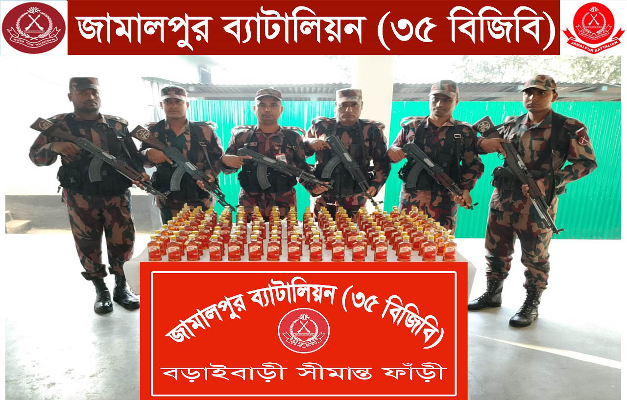 সংবাদ বিজ্ঞপ্তিতে বলা হয়, ‘মাদকের বিরুদ্ধে বিন্দুমাত্র ছাড় নয়’ ‘মাদকের বিরুদ্ধে বিন্দুমাত্র ছাড় নয়’ এ শ্লোগানকে সামনে রেখে জামালপুর ব্যাটালিয়নের (৩৫ বিজিবি) অধিনায়ক লে. কর্নেল হাসানুর রহমান, পিএসসির সার্বিক দিক-নির্দেশনায় কুড়িগ্রামের রৌমারী উপজেলার বড়াইবাড়ি সীমান্তে বিজিবির টহলদল সীমান্ত পিলার ১০৬৭/৪ এস হতে গোপন সংবাদের ভিত্তিতে ১৩৫ বোতল ভারতীয় মদ জব্দ করেছে।