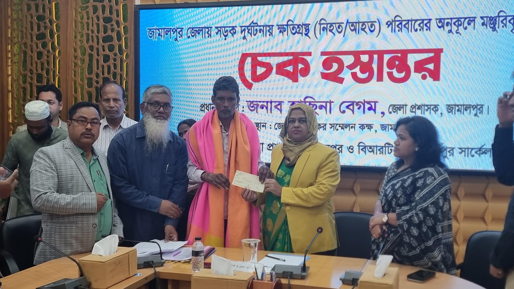 জামালপুরে সড়ক দুর্ঘটনায় নিহতদের পরিবারের মাঝে চেক বিতরণ