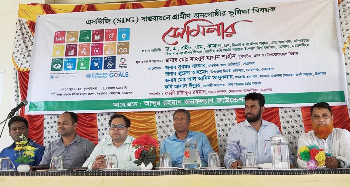 নানা কারণে টেকসই উন্নয়ন লক্ষ্যমাত্রা (এসডিজি) লক্ষ্য অর্জনে যখন সারা দেশই ঝিমিয়ে পড়েছে, ঠিক সেই সময়ে সরকারের যুগ্মসচিব মো. মাহবুব হাসান শাহীনের ব্যক্তি উদ্যোগ সার্বিক ব্যবস্থাপনায় প্রত্যন্ত হাওর অঞ্চলের প্রান্তিক জনগোষ্ঠীদের নিয়ে প্রাণবন্ত সেমিনার আয়োজন করে প্রশংসায কুড়াচ্ছেন। তার মত দায়িত্বশীলরা এসডিজি অর্জনে কাজ করলে দ্রুত সময়ের মধ্যেই বাংলাদেশে এসডিজি বাস্তবায়ন সম্ভব হতো বলে প্রত্যাশা ব্যক্ত করেছেন স্থানীয়রা। নেত্রকোণা জেলার মোহনগঞ্জ উপজেলার হাওর এলাকার প্রত্যন্ত গ্রাম নওয়াগাঁও আব্দুর রহমান দাখিল মাদ্রাসা প্রাঙ্গণে গত ১২ জুন ২০২৫ অনুষ্ঠিত এসডিজি (SDG) বাস্তবায়নে গ্রামীণ জনগোষ্ঠীর ভূমিকা বিষয়ক সেমিনার অনুষ্ঠিত হয়।