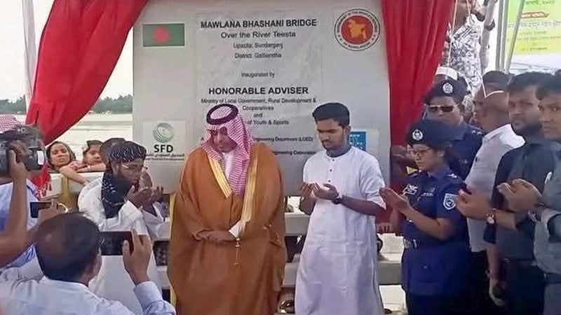 এর আগে সেতুর নামফলক উম্মোচনের পর দোয়া করেন সুন্দরগঞ্জ উপজেলা জামে মসজিদের ইমাম ও খতিব মাওলানা মুফতি মো. ওমর ফারুক। এরপর সেতুর সুন্দরগঞ্জের হরিপুর প্রবেশমুখে ফিতা কেটে সবার জন্য উন্মুক্ত করা হয়। এসময় উৎসুক জনতার ভিড় সামাল দিতে বেশ বেগ পেতে হয় আইনশৃঙ্খলা বাহিনীকে। পরে গাড়িতে উঠে গাইবান্ধাবাসীর সঙ্গে করমর্দন করেন উপদেষ্টা আসিফ মাহমুদ। ওইসময় জেলা প্রশাসক চৌধুরী মোয়াজ্জম আহমদ, পুলিশ সুপার নিশাত এ্যঞ্জেলা, গাইবান্ধা এলজিইডির নির্বাহী প্রকৌশলী উজ্জল চৌধুরী ও সেতু নির্মাণ সংশ্লিষ্ট কর্তৃপক্ষসহ উপদেষ্টার সফর সঙ্গীরা উপস্থিত ছিলেন।