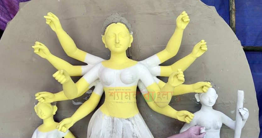 শেষ মুহূর্তে ব্যস্ত সময় পার করছেন প্রতিমা তৈরির কারিগররা। এখন সাজানো-গোছানোর কাজ চলছে। ২৮ সেপ্টেম্বর থেকে শুরু হচ্ছে সনাতন ধর্মাবলম্বীদের সবচেয়ে বড় ধর্মীয় উৎসব শারদীয় দুর্গাপূজা। দেবী দুর্গাকে বরণে কারও হাতে কাদামাটি, কারও হাতে রংতুলি। সকাল থেকে গভীর রাত পর্যন্ত কর্মব্যস্ত সময় কাটছে তাদের। তিন মাসেরও বেশি সময় ধরে পরম যতেœ প্রতিমা তৈরির কাজ করছেন তারা। আর বর্তমানে চলছে শেষ মুহূর্তের প্রস্ততি।