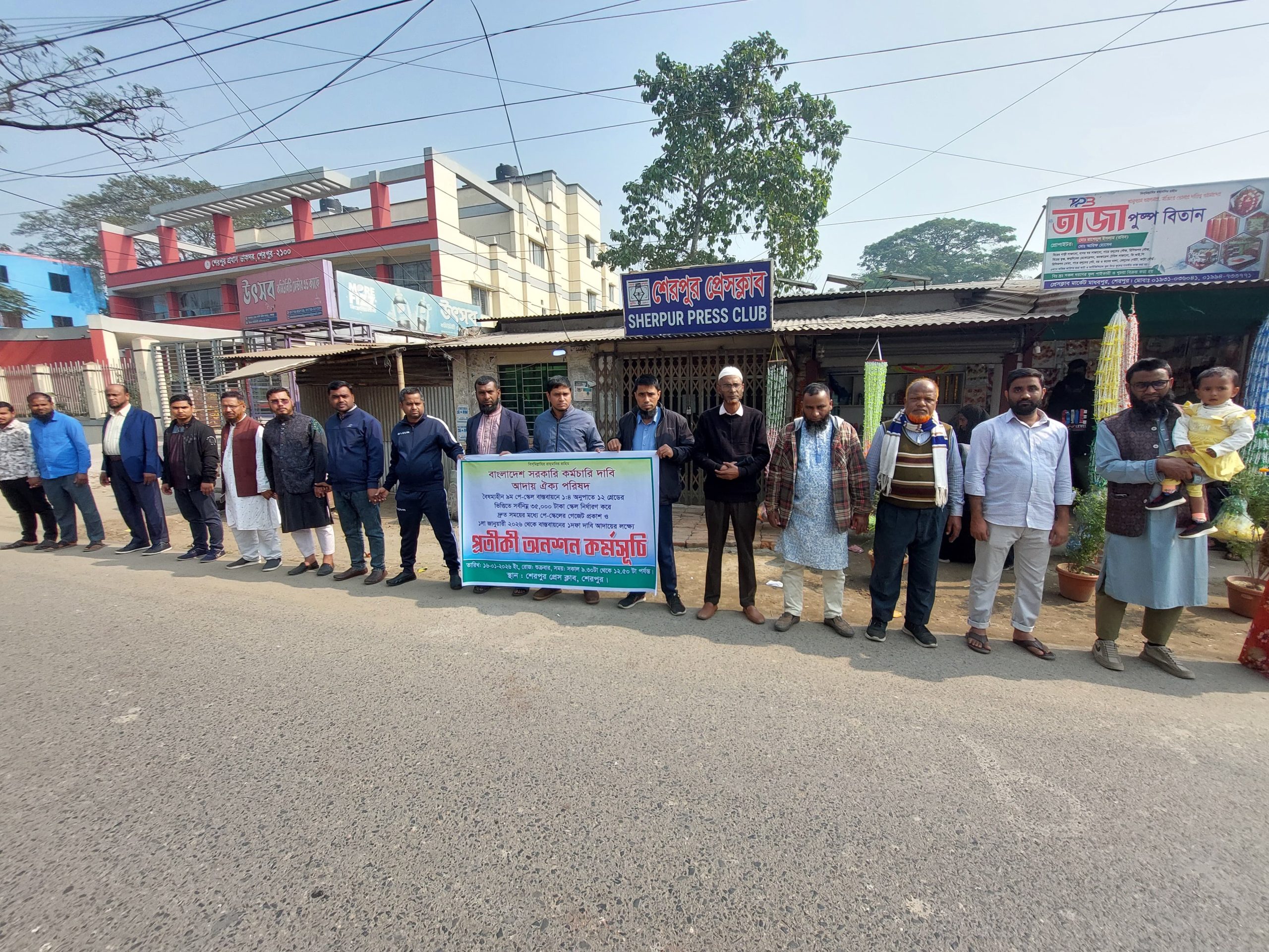 বৈষম্যহীন ৯ম পে-স্কেল বাস্তবায়নের দাবিতে শেরপুরে সরকারি কর্মচারীদের প্রতীকী অনশন