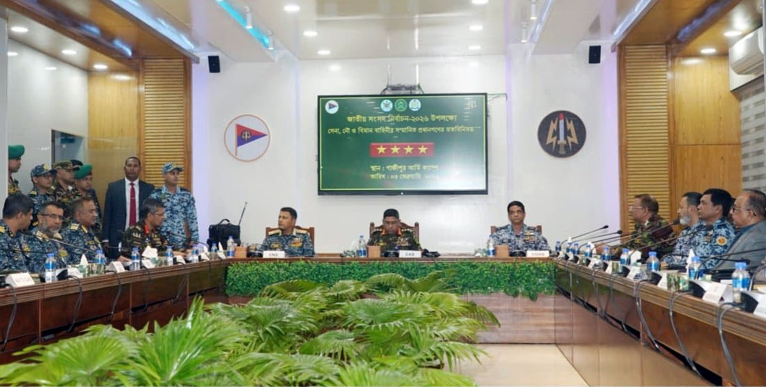 সফরকালে বাংলাদেশ ধান গবেষণা ইনস্টিটিউটের সম্মেলনকক্ষে ঢাকা বিভাগের গাজীপুর, নরসিংদী ও নারায়ণগঞ্জ জেলার ঊর্ধ্বতন সামরিক কর্মকর্তা, আইনশৃঙ্খলা রক্ষাকারী বাহিনী ও অসামরিক প্রশাসনের কর্মকর্তাদের সঙ্গেও মতবিনিময় করেন তিন বাহিনীর প্রধানেরা। সভায় নির্বাচনকে শান্তিপূর্ণ, নিরপেক্ষ ও সুষ্ঠুভাবে সম্পন্ন করতে আন্তপ্রাতিষ্ঠানিক সমন্বয় এবং সামগ্রিক নিরাপত্তা ব্যবস্থাপনা নিয়ে আলোচনা হয়।