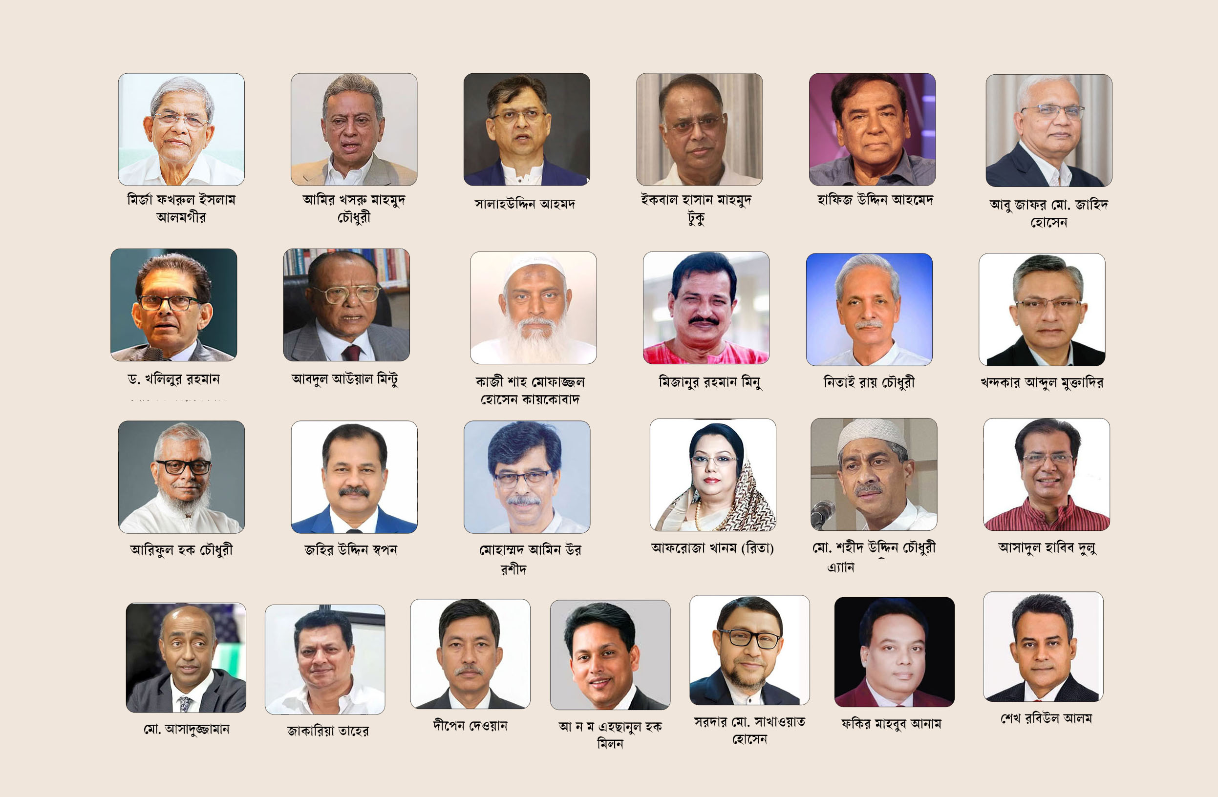 মন্ত্রিসভায় যারা থাকছেন- মির্জা ফখরুল ইসলাম আলমগীর, আমীর খসরু মাহমুদ চৌধুরী, সালাহউদ্দিন আহমদ, ইকবাল হাসান মাহমুদ টুকু, হাফিজ উদ্দিন আহমেদ, এ জে ড এম জাহিদ হোসেন, খলিলুর রহমান (টেকনোক্র্যাট), আবদুল আওয়াল মিন্টু, শাহ মোফাজ্জল হোসেন কায়কোবাদ, মিজানুর রহমান মিনু, খন্দকার আবদুল মুক্তাদির, আরিফুল হক চৌধুরী, জহির উদ্দিন স্বপন, আমিনুর রশিদ (টেকনোক্র্যাট) আফরোজা খানম রিতা, শহীদ উদ্দুন চৌধুরী এ্যানী, আসাদুল হাবীব দুলু, মো. আসাদুজ্জামান, জাকারিয়া তাহের সুমন, দিপন দেওয়ান, আ ন ম এহসানুল হক মিলন, সরদার সাখাওয়াত হোসেন বকুল, শেখ রবিউল আলম, নিতাই রায় চৌধুরী, ফকির মাববুব আনাম।