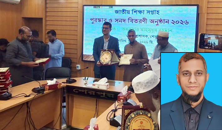জাতীয় শিক্ষা সপ্তাহ ২০২৬-এ শেরপুর জেলার শ্রেষ্ঠ প্রতিষ্ঠান প্রধান (কারিগরি) হিসেবে নির্বাচিত হয়েছেন শ্রীবরদী উপজেলার হালিমা আহসান ইনস্টিটিউটের অধ্যক্ষ কে. এম. ফারুক। ১৫ মার্চ রবিবার জেলা প্রশাসকের কার্যালয়ে জেলা শিক্ষা অফিসের উদ্যোগে আয়োজিত পুরস্কার বিতরণী অনুষ্ঠানে তার হাতে সম্মাননা স্মারক ও সার্টিফিকেট তুলে দেওয়া হয়।