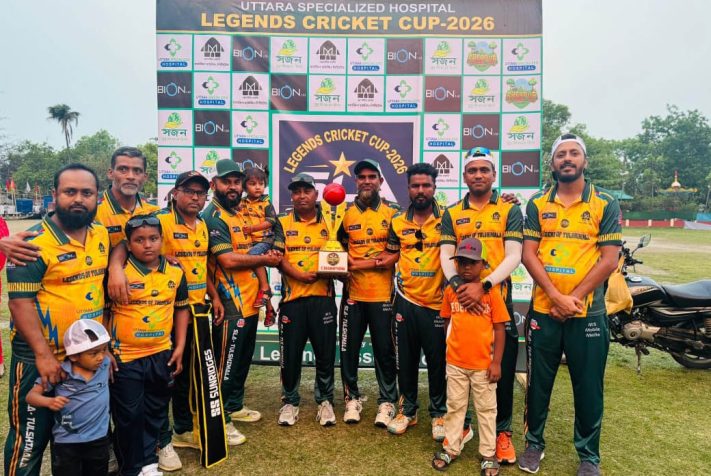 শেরপুরে স্পোর্টস লিজেন্ডস অ্যাসোসিয়েশন (এসএলএ) এর উদ্যোগে লিজেন্ডস ক্রিকেট কাপ-২০২৬ সিজন-৩’র ফাইনাল খেলা অনুষ্ঠিত হয়েছে। ২৪ মার্চ মঙ্গলবার বিকেলে শহীদ দারোগ আলী পৌর পার্ক মাঠে আয়োজিত ওই ফাইনাল খেলায় লিজেন্ডস অব দশকাহনীয়াকে ৭ উইকেটে পরাজিত করে চ্যাম্পিয়ন হয় লিজেন্ডস অব তুলশীমালা।