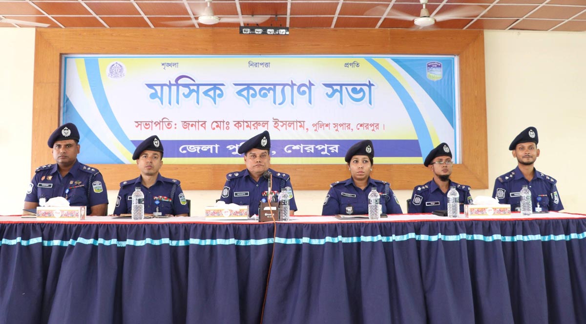 শেরপুরে জেলা পুলিশের উদ্যোগে নিয়মিত কার্যক্রমের অংশ হিসেবে সকল পদমর্যাদার অফিসার‌ ও ফোর্সদের বিবিধ কল্যাণ সাধনে শেরপুর পুলিশ লাইন্সে মাসিক কল্যাণ সভা অনুষ্ঠিত হয়েছে। ১৩ এপ্রিল সোমবার সকালে পুলিশ লাইন্স মাল্টিপারপাস শেডে আয়োজিত মাসিক কল্যাণ সভায় সভাপতিত্ব করেন শেরপুরের পুলিশ সুপার মো. কামরুল ইসলাম। সভায় পুলিশ সুপার জেলা পুলিশে কর্মরত সকল সদস্যদের বিবিধ কল্যাণ সাধনের লক্ষ্যে সকল পদমর্যাদার অফিসার‌-ফোর্সদের সমস্যার কথা শোনেন এবং সেসকল সমস্যা সমাধানের জন্য সংশ্লিষ্টদের তাৎক্ষণিক সিদ্ধান্ত ও প্রয়োজনীয় দিক নির্দেশনা প্রদান করে উপস্থিত সকল অফিসার-ফোর্সকে পেশাদারিত্ব বজায় রেখে সুচারুভাবে দৈনন্দিন কার্যক্রম সম্পন্ন করার আহ্বান জানান।