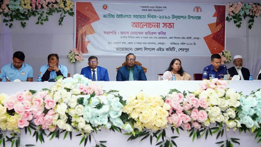 ‘সরকারি খরচে বিরোধ শেষ, সবার আগে বাংলাদেশ’- এ প্রতিপাদ্য বিষয়কে সামনে রেখে শেরপুরে নানা আয়োজনে জাতীয় আইনগত সহায়তা দিবস-২০২৬ পালিত হয়েছে। ২৮ এপ্রিল মঙ্গলবার সকালে জেলা ও দায়রা জজ আদালত প্রাঙ্গণে বেলুন ও কবুতর উড়িয়ে দিবসের উদ্বোধন করেন জেলা লিগ্যাল এইড কমিটির চেয়ারম্যান এবং সিনিয়র জেলা ও দায়রা জজ মোহাম্মদ জহিরুল কবির। পরে আদালত প্রাঙ্গণ থেকে এক বর্ণাঢ্য র্যালি বের হয়ে শহরের গুরুত্বপূর্ণ সড়ক প্রদক্ষিণ করে একই জায়গায় গিয়ে শেষ হয়।