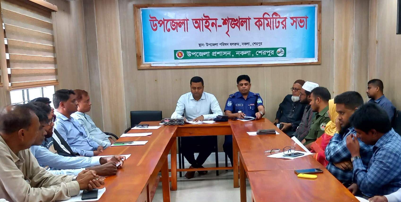 সভায় চলমান পাবলিক পরীক্ষা, তেলের পাম্পে পেট্রোল, অকটেন ও ডিজেল বিতরণ, পৌরশহরে পাবলিক টয়লেট স্থাপন, রাতের বেলা দেয়াল টপকে নকলা উপজেলা স্বাস্থ্য কমপ্লেক্স ও নকলা সরকারি পাইলট উচ্চ বিদ্যালয়ে মাদক সেবন, বাল্যবিবাহ, নারী ও শিশু নির্যাতন, নকলা শিল্পকলা একাডেমী ও উপজেলা পরিষদের ভিতরে অবস্থিত পাবলিক লাইব্রেরীর কার্যক্রম সচলকরণ, বাজার পাহারা ও ব্যবসায়ীদের দোকানপাটের নিরাপত্তা, প্রাথমিক বিদ্যালয়ের শিক্ষার্থীদের ফিডিং কর্মসূচি ও প্রান্তিক পরীক্ষার প্রশ্নপত্র তৈরি, গ্রাম আদালত এবং সাংবাদিকদের বস্তুনিষ্ঠ সংবাদ পরিবেশনসহ উপজেলার সার্বিক আইন-শৃঙ্খলা পরিস্থিতি নিয়ে বিস্তারিত আলোচনা ও গুরুত্বপূর্ণ সিদ্ধান্ত গৃহীত হয়।