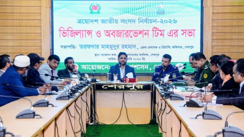 শেরপুরে ত্রয়োদশ জাতীয় সংসদ নির্বাচন-২০২৬ সংক্রান্ত ‘ভিজিল্যান্স ও অবজারভেশন টিম’র সভা অনুষ্ঠিত হয়েছে। ১৫ জানুয়ারি বৃহস্পতিবার সকালে জেলা প্রশাসনের উদ্যোগে জেলা প্রশাসকের সম্মেলন কক্ষে ওই সভার আয়োজন করা হয়। এতে…