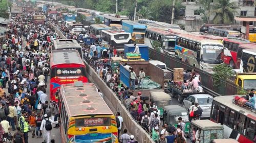 গাজীপুরের টঙ্গীর হোসেন মার্কেট এলাকায় একটি পোশাক কারখানার শ্রমিকরা বেতন ও ঈদ বোনাসের দাবিতে মহাসড়ক অবরোধ করে বিক্ষোভ করেছে। ২৩ মার্চ রবিবার সকাল ৭টা থেকে ঢাকা-ময়মনসিংহ মহাসড়ক অবরোধ করে তারা…